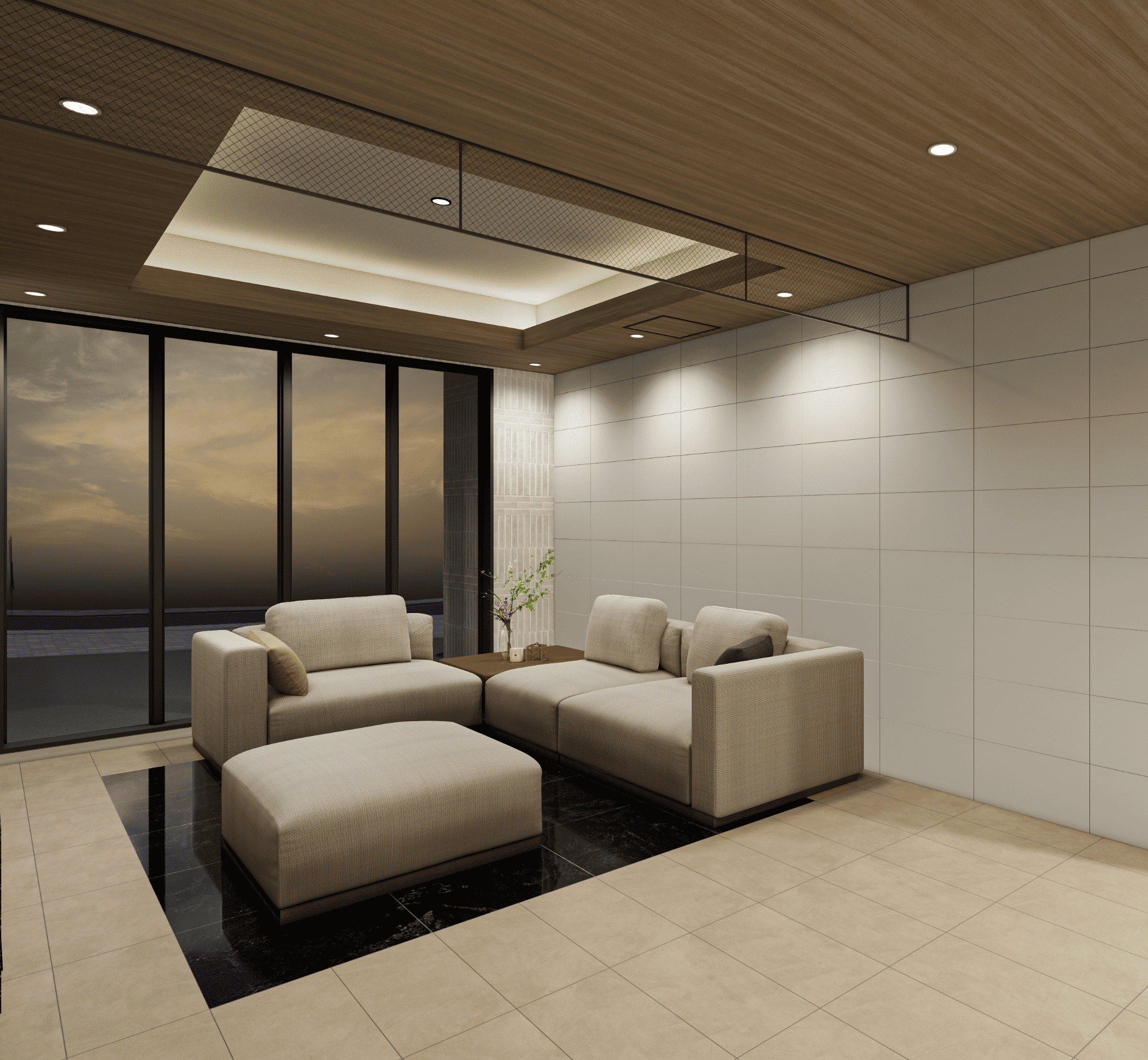 帰り着いた住まう方の心をほどき、これから出かける方に活力を与えられる場所であるために。開放的で明るいラウンジスペースをデザイン。心のオンとオフをスムーズに切り替えられる、透明感のある美しい空間に仕上げています。