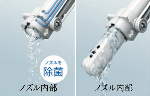 ■ノズルきれいきれい除菌水が、ノズル外側だけでなく、ノズル内部の通水路も自動で洗浄・除菌。きれいが長持ちします。