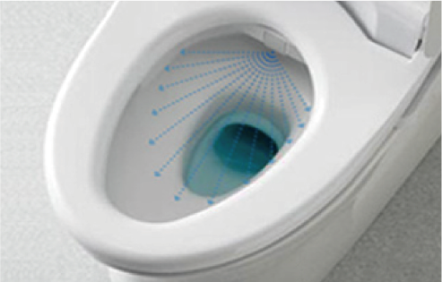 ■プレミスト自動で便器にミストをふきつけ、汚れをつきにくく、落ちやすくする新技術。